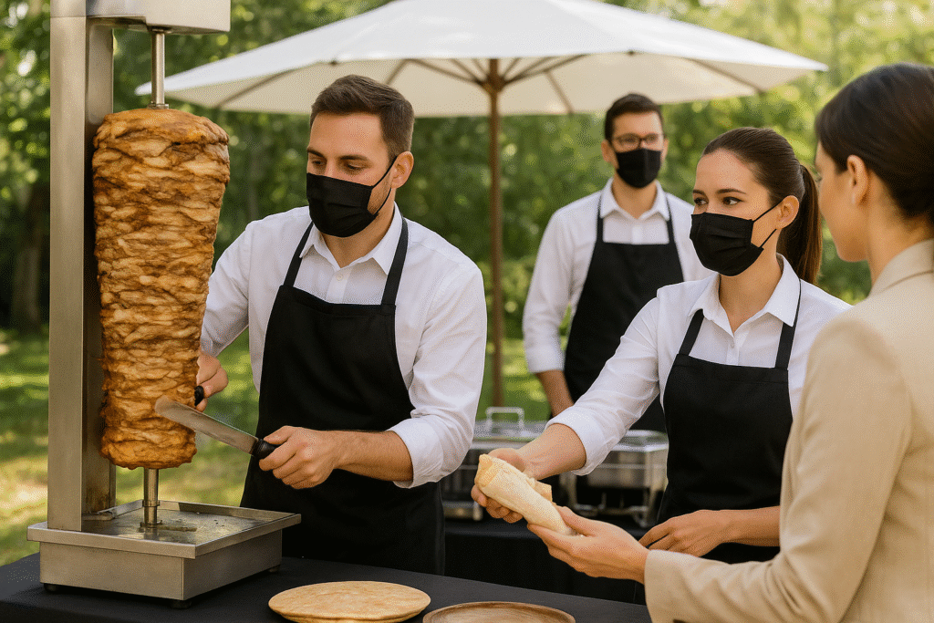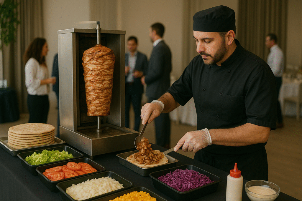 Llevamos a tu evento la experiencia completa del shawarma en vivo: torre profesional, chef especializado y un servicio rápido, limpio y organizado. Perfecto para cumpleaños, matrimonios, eventos corporativos, fiestas privadas y más.